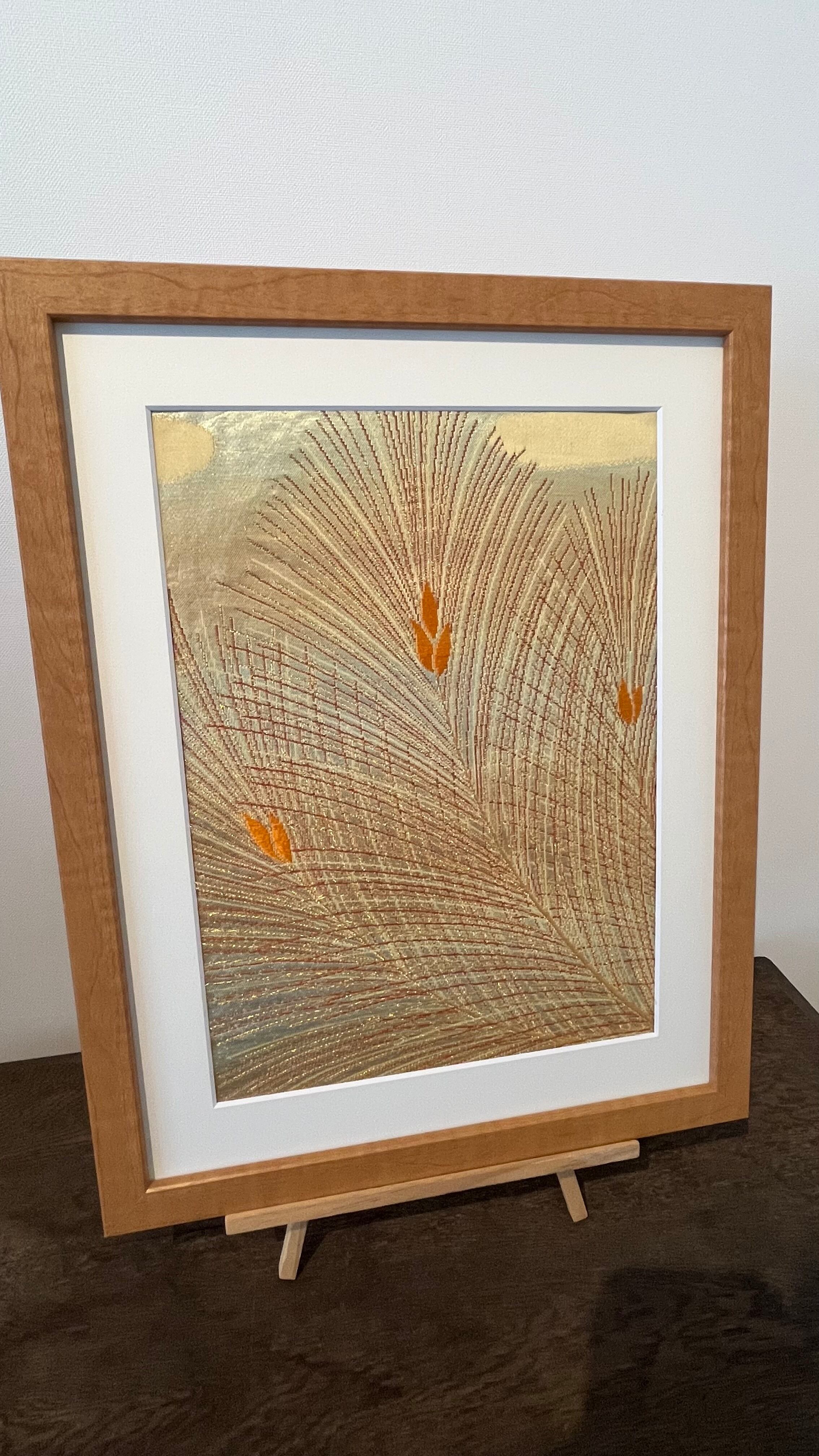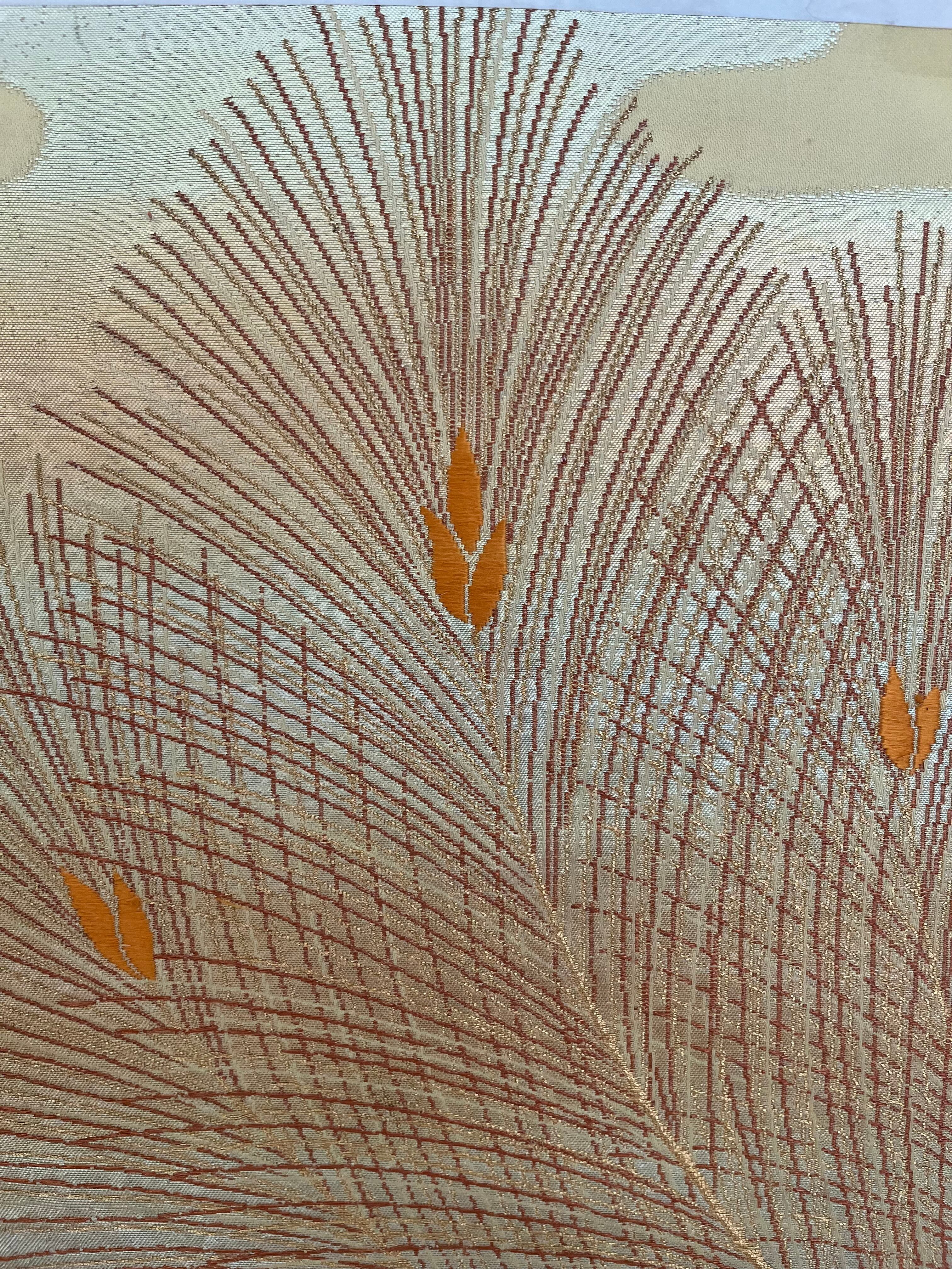Delicately woven with gold and silver threads, the rice ears shimmer with different expressions depending on the angle of light.